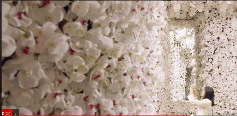 the wall of flowers, inspired by the JEFF KOONS, ‘FLOWER PUPPY’ – inaugural runway show, RAF SIMONS for DIOR.