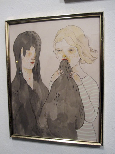 above: the show’s card – ALLYSON MELLBERG – ‘Loutus Eater’, 2010. egg tempera & walnut ink. 11 x 14 in. ($500)
