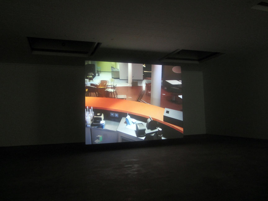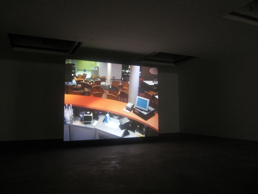 in the back room – was a big looped ‘recreation’ animated video/film and sound installation. very striking for the visuals, the eerie soundtrack, and of course – the screening being ENDLESSLY looped – all alone in that big otherwise empty, and super professional – exhibition room.