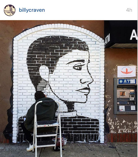 “layin’ some lines down on his 1st outdoor mural of the season”