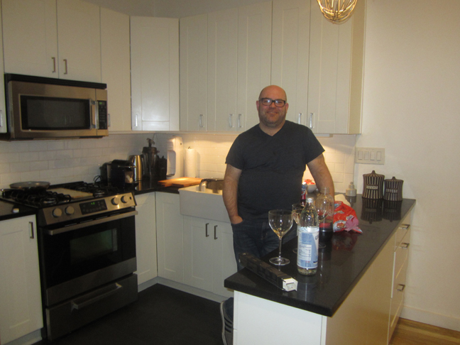 DANIEL DAVIDSON in their compact but lovely kitchen. the living quarters are upstairs, they have 2 small, separate studios downstairs – on the lower level.
