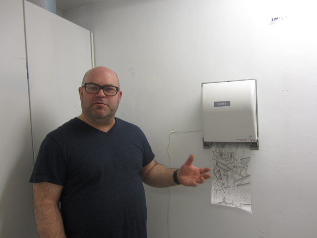 the other totally fascinating thing, was a small niche with a great piece: a paper ‘towel’ dispenser !!