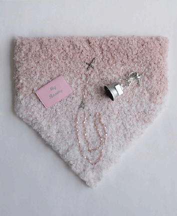 I liked how it referenced the ‘texture’ in the title. plush carpet, silvery, thin metallic snaking chain, more solid souvenir trophy, & the abrupt, plastic pink, of the shiny, retro, vinyl rosary ‘envelope’.