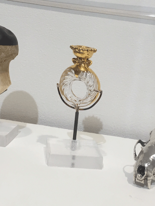 Borosilicate Glass and Gold fired enamel / 0.6 x 0.4 x 0.9 in.