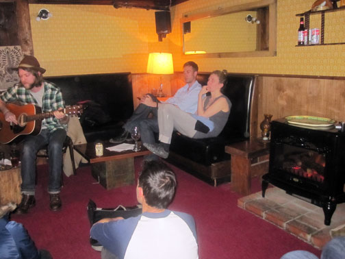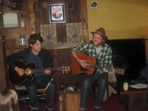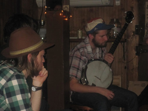 GOOD LUCK TO SWEET TOOTH NELSON and BRETT LAND, his banjo-playing buddy – who are leaving our sweet shores – well, Bushwick, to take on the rest of the country – well, the Northeast coast, for a month-long tour. We caught their farewell gig, and tape launch party – at NORTHEAST KINGDOM, last night, where they and some of their Folk Revival buddies – rocked the ‘den’.