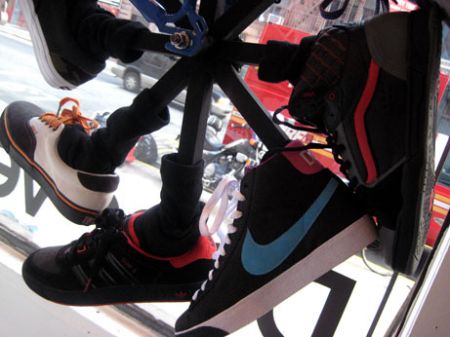 MAX NIGHT’S ‘sneaker’ bike in the storefront window. love the color he chose for the bike frame.