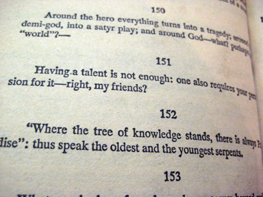 detail, TOM SACHS, ‘Waffle Bike’, 2008. – “151 – Having a talent is not enough: one also requires your permission for it – right, my friends?” & “152 – ‘Where the tree of knowledge stands, there is always Paradise’: thus speak the oldest and the youngest serpents.”