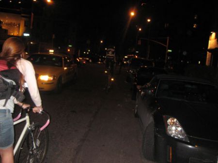 once they get on their bikes, they just scramble up the frame really really fast – & – they really take off !! – it’s impossible to catch them – they go very very fast. that’s TAARNA, in the distance already, down the center lane – you can catch them riding around, in Williamsburg & sometimes, like tonight – they even hit the big island. Manhattan.