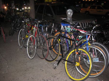 the bikes lining up outside LIT. pretty close by, also on 2ND AVE, for the afterparty.