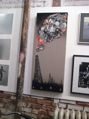 ERIK FOSS has a small collage & paint on canvas piece in the ‘JOYRIDE’ back room of the ‘Dear Velo’ show. (either Erik’s hired a P.R. firm or LIT is really hot !! – it got mentioned twice this weekend, once in PAGE SIX Magazine, in the same sentence as MISCHA BARTON, & once on PAGE SIX, itself – way to go – E-R-I-K !!) LIT was also the scene of the afterparty for the ‘Dear Velo’ show – with ERIK himself, & PAUL SEVIGNY doing the DJ honors.