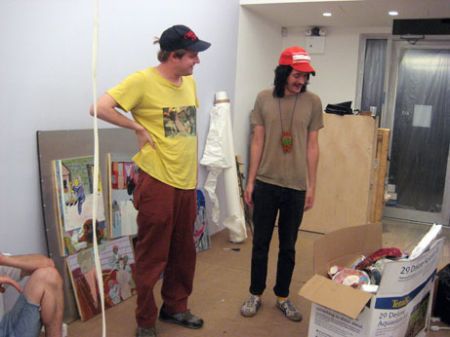 DREW GILLESPIE of BOBO (left). local JUSTIN SAMSON drops by after the JOHN CONNELLY PRESENTS opening of a smaller group show – ‘A. T. COMPLEX’ – with a much more minimalist thread – in which Justin has several really good pieces. definitely worth. Photos of that opening, last Thursday June 26, 2008 – post next week.