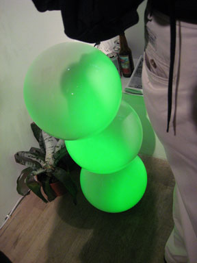 BOBO made the great ‘statement’ frame around the screen. including the plastic ‘garbage’ bags which are a bright, albeit subtle translucent – green and yellow, in reality. and put a beautiful plastic 3D case over the screen. Annie hadn’t seen it till the opening night & she loved it. what’s not to love. in a BOBO show.