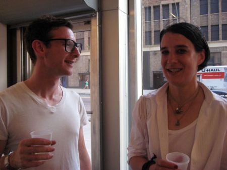 from left: CARLOS PARREIRA, MARGUERITE MacPHAIL, and BRENDAN LYNCH – young art fans at the opening. guess we have to take this opportunity – to say farewell – and, all the best – to CARLOS, who has worked at the Daniel Reich Gallery for awhile now, as he has returned to his home base, Portugal. we already miss you.