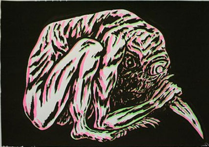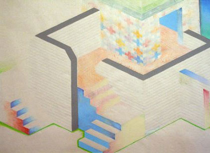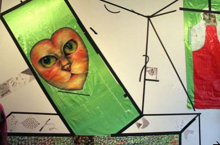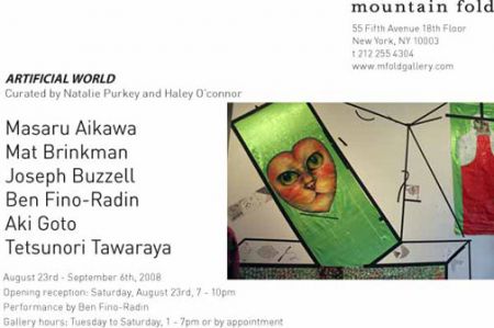 the show features work by: MASARU AIKAWA, MAT BRINKMAN, JOSEPH BUZZELL, BEN FINO-RADIN, AKI GOTO & TETSUNORI TAWARAYA – 7 Japanese and American artists “whose work touches on ideas of made-up, artificial, or simulated worlds. Thru pure ecstatic imagination, distortion, duplication, or simulation, they each evoke a sometimes lucid, sometimes monstrous sub-reality. All diverge at a point between humor and sober reflection. The work ranges from installation, drawing, painting, sculpture and performance.” (press release)