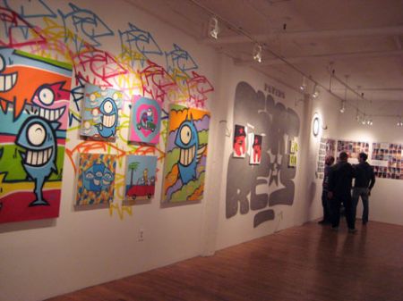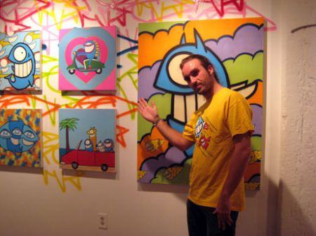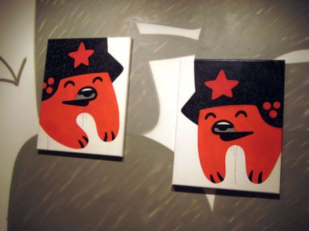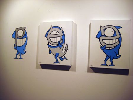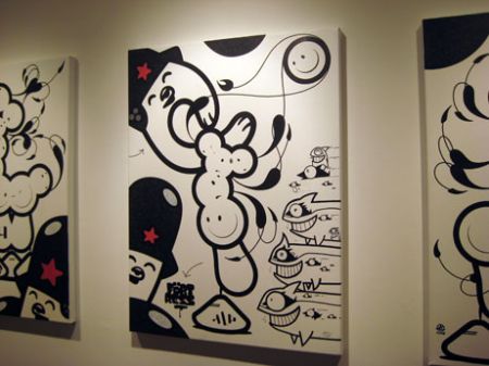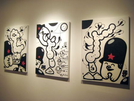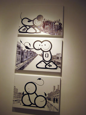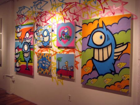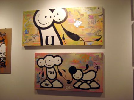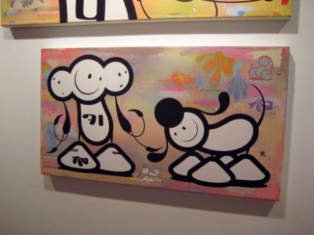 EINE. the paintings are 32 x 40 ins., acrylic and spray paint on canvas. ($3,000 ea.)