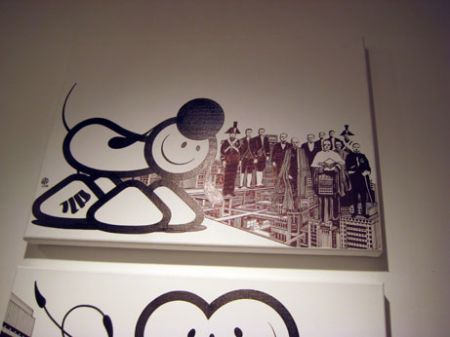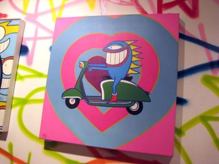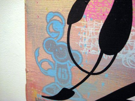 right: ‘We liked your style #2’. 30 x 40 ins., spray paint, acrylic and marker on canvas. ($3,553)