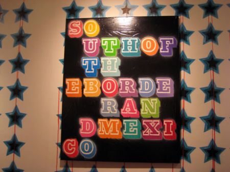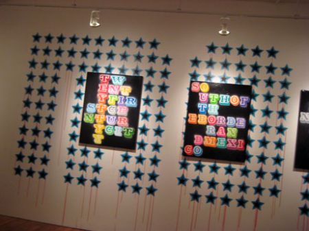 EINE – he hand-stenciled the wall, around his paintings – for the show.