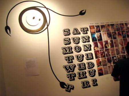 THE LONDON POLICE didn’t paint the wall around their works – as the other 3 artists did – but Chaz TLP – (BOB TLP didn’t make the opening) did this small paint job on the wall – next to a big composite of photos he took – ‘EVERY 20 MINUTES !!’ – while here in the USA. EINE did the days of the week – lettering.