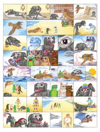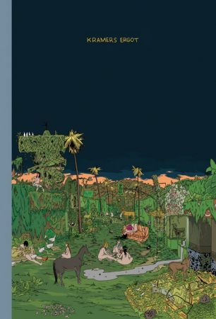 GABRIEL FOWLER of DESERT ISLAND writes to tell us: “Kramers Ergot 7 is the most ambitious comics anthology of the past decade. While previous issues of Kramers explored an innovative blend of art and comics, this collection focuses on expanding the boundaries of the narrative comics page. KE7’s massive 16 x 21 in. page size has allowed the artists to tell stories at a scope not seen since the expansive Sunday newspaper comics of the early twentieth century, including over 50 of the world’s most esteemed cartoonists, it draws on the talents of established cartoonists, newcomers, elegant stylists, and unpredictable innovators such as DANIEL CLOWES, GABRIELLE BELL, MATT GROENING, C.F., CHRIS WARE, JAIME HERNANDEZ, C. TYLER, BLANQUET, TED MAY, ADRIAN TOMINE, JOHNNY RYAN, KIM DEITCH, and many others.