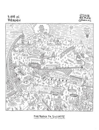 here’s a peak at the MATT GROENING – contribution to KRAMERS ERGOT 7 – called ‘LIFE IN HEAVEN / THE ROAD TO SUCCESS’ …. and, don’t you just want to see it – full scale – 16 x 21 in. – big time !!