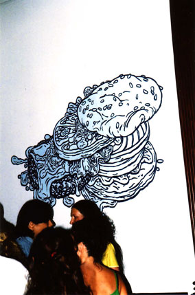 LEO (LIO) MALKA – was there, and he told me he had bought several of Taylor’s ‘hamburger’ paintings from ‘those girls’ over at CLEMENTINE – but he couldn’t make head over heels – what this new stuff was about, and he looked as if he had just seen his hard won dough (right !!) flushed down the toilet, that’s what I mean, dumbass. I think it even turned him off from buying contemporary ’emerging’ art altogether from that day forward. he has tons of HARINGS & BASQUIATS, so what !!