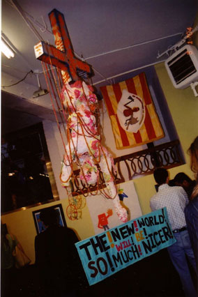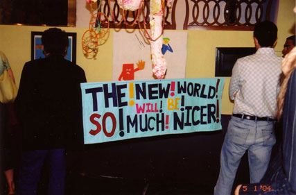 BRIAN BELOTT at the opening of ‘MAJORITY WHIP’ – an artist ‘get out and vote’ effort. MAY 1, 2004