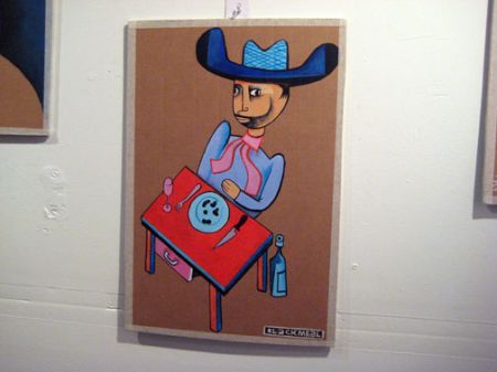 on another back wall, JIM AVIGNON – smaller works on cardboard ($300 ea.)