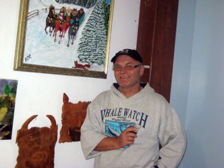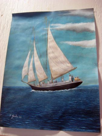 he says: “I went to school for 8 years before going to work in the town boat yard. My job at the ship yard was marine carpenter. I came to America in 1959 and went to work on the water front securing cargo on ships. In 1972 the industry was modernized with containerization and I found myself with a guaranteed salary and a lot of time on my hands. I started painting and drawing to occupy my time, this is my hobby and I am a self-taught artist”.