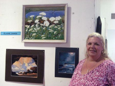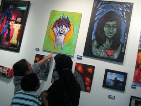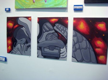 from very left, at top: paintings by ERIC SOPHIE; LOSER; and BOJANA COKLYAT.