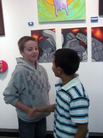local kids turned art critics !! for the day . . . . they are gesturing towards a piece by LOSER.