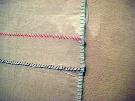 all the large pieces were stitched in v black thread – onto fine cotton ‘duck’ or canvas . . . which in turn, was itself hand-stitched or really, hemmed, together into larger pieces. in baby colors.