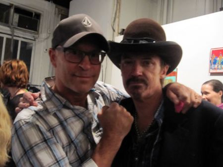 MARK put the silk screen ‘TARGET’ insignias on the QUIET uniforms. MATT & MARK later taught Josh how to shoot up on the farm. This is the opening reception of their new work at MINDY WYATT GALLERY, 814 Broadway, 2nd FL.