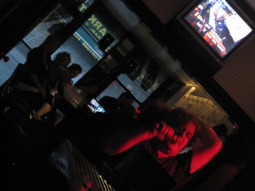 then Charlie took me and Kate over to his favorite nite-time after-opening hang out – the BABY GRAND – !! – 161 Lafayette corner of Grand St. (duh !!) which just happens to be one tiny sweet slice of a Karaoke !! bar !! and, who knew – a star is born !!