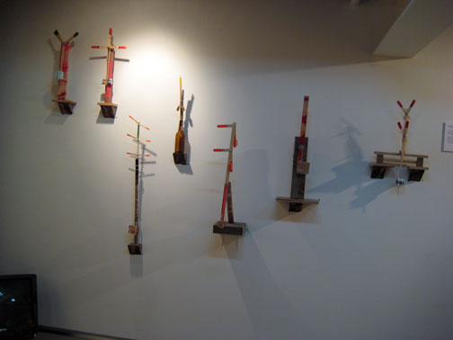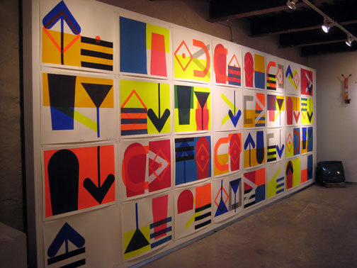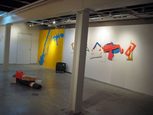 the show included many elements – including some found floor pieces – and – some cut and painted wooden wall assemblages . . . that read as nautical ‘signs’ . . . or flags.