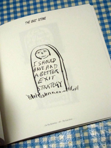 ha. speaking of which – comix, of course & art books, for sure – and, festivals !! – the news from MIAMI is that FREIGHT+VOLUME is debuting ANTHONY HADEN-GUEST’S new volume In The Mean Time – “a sparkling compilation of recent drawings and verse tackling the art world” to great acclaim. The slim illustrated tome has already been heralded by JERRY SALTZ, JAY McINERNEY, and JOHN RICHARDSON among others – as “a satirical tour-de-force”. Edited by YASHA WALLIN and designed by EMILY ANDERSON, the FREIGHT+VOLUME book was launched last nite – with a big party at the STANDARD HOTEL.