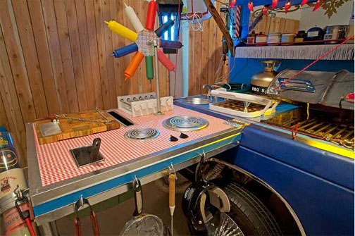 as well FREIGHT+VOLUME is proud to announce that the OKAY MOUNTAIN ART COLLECTIVE . . . a really happening 10 person artist collective outta AUSTIN, TEXAS – who they profiled with a gallery show this past summer 2010 – has one of the featured artist installations at PULSE MIAMI – an EXTREME TRAILER !! aka the “customization of automobiles and barbecue pit trailers” !! which is a kind of low-key or down-low way of saying – wow, as these few pix easily attest to. or as we call it here in the Northeast – tailgating !!