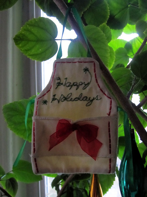 VINTAGE ORNAMENT, in the shape of an apron !! (ca. 1940 ?)