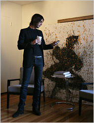 VLADIMIR RESTOIN ROITFELD – in the NEW YOUR TIMES STYLE SECTION – WITH WHAT LOOKS TO BE A ‘NEW’ – CAUSE IT’S SLIGHTLY MORE CHARMING & UP-BEAT – AS OPPOSED TO SOUR, DARK, THREATENING & BITTER – RICHARD HAMBLETON aka THE SHADOWMAN – CANVAS – BEHIND HIM !!