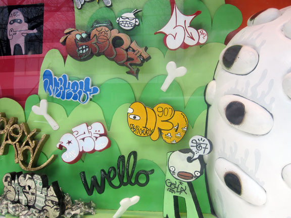 the 907 CREW WINDOW – a super smart collaborative effort that broke the box – on window display.