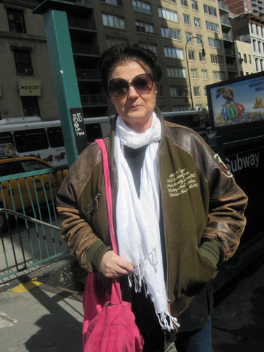 ran into JANE KAUFMAN on the street – the other day . . . she was wearing her (real) fighter jacket.