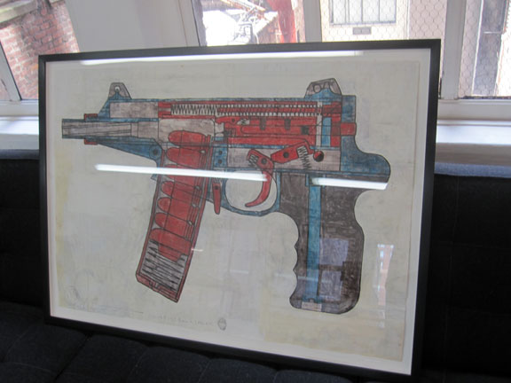 GUN PIECE BY ALFREDO MARTINEZ. it is bigger than it looks in the photos – approx 2 ft. x 3 ft.
