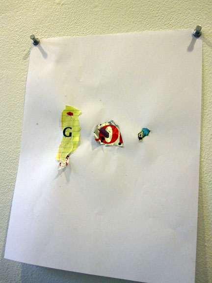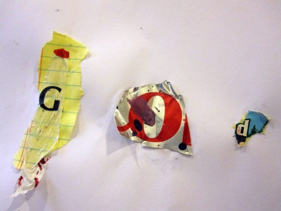 from HA . . . to GOD. . . . minimalism at its darn best. this whip smart collage, message plus dig those colors . . . by DAN COLEN. who else ?