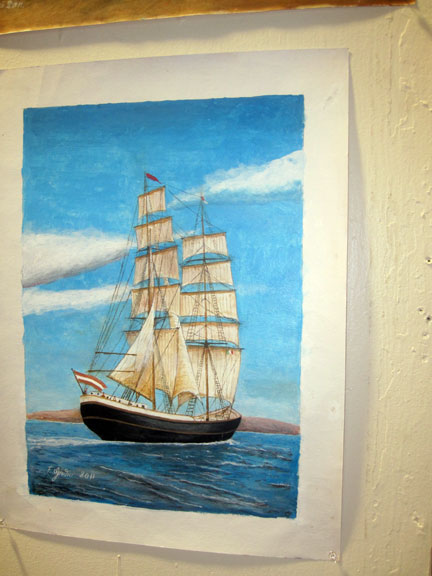 the iconic sailboat paintings are by FULVIO GIUDICI – who’s been swimming in the pool going back at least 30 years.