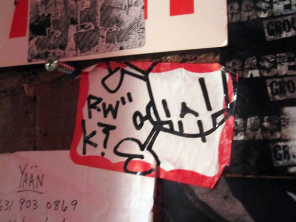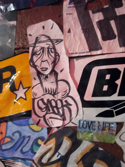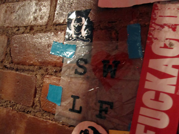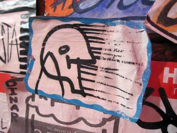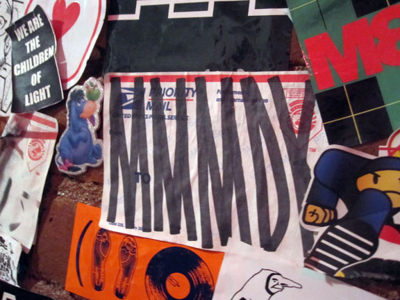 which is . . . collaged right onto the wall – of the East Village apt of new acquaintance . . . ELLA WALDMAN.