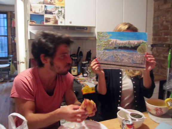 Tibor, a friend of Ella’s from France, he lives in Paris – has been slowly making his way across the United States for the past few months. He has just this very moment returned to NYC, from San Francisco – and is about to depart for his homeland – the very next day. that is his drawing of San Francisco.