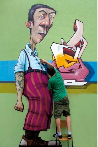 Italian street artist MACS – at the ANDRE SARAIVA opening, HALF GALLERY, NYC. Feb 11, 2012.
