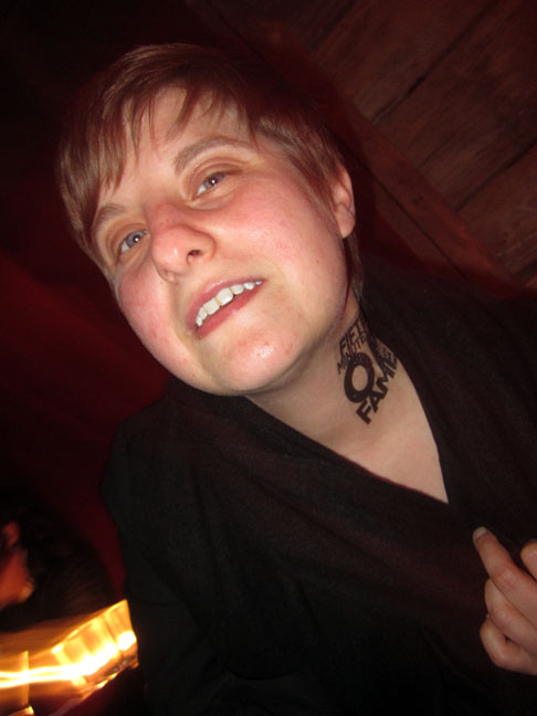 a drop-dead great temporary tattoo she acquired at the recent HENNESSEY YOUNGMAN curated – at FAMILY BUSINESS GALLERY opening !! FAMILY BUSINESS GALLEY, oft referred to on the street as the CATTALAN FAMILY BUSINESS GALLERY, (!!) is a pop-up space in the ANNA KUSTER GALLERY on W. 21 St just below 10th Av – operated by those fun guys: MAURIZIO CATTELAN and MASSIMILIANO GIONI.
