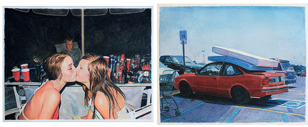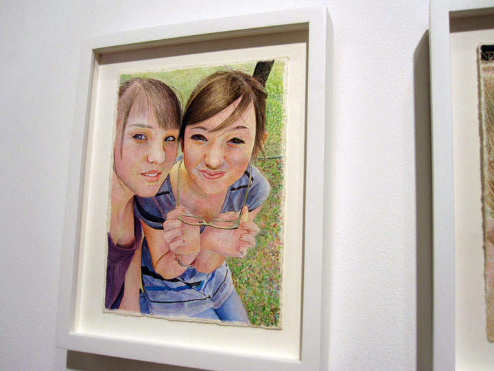 BILL BRADY writes: “since then Chris’ watercolors have become even more refined and exquisite. Still working with images taken from Facebook, posted by friends, Chris elaborates on the portrayal of adolescent innocence and nonsense.”