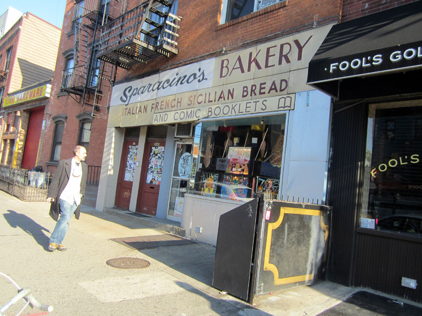right under that SPARACINO’S BAKERY sign – like a pirate treasure map gone secret – mark the X. for DESERT ISLAND, the comic book store and art gallery – at 540 Metropolitan – right next to FOOL’S GOLD !! just off the Lorimer L train station – deep into Williamsburg country. and ya you don’t need a panel of 3 – to know – it’s the real deal.