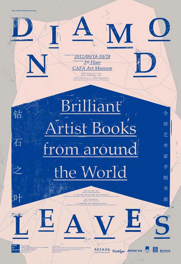 ‘Diamond Leaves: Brilliant Artist Books from around the World’ . . . an ambitious international exhibit opening tomorrow, TUES SEPT 18, 2012 at the state-of-the-art CAFA ART MUSEUM in Beijing . . . will include (nearly) 40 handmade books – from the CINDERS COLLECTION.